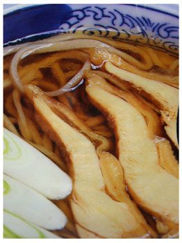 河北町は山形空港にも近く、昼は「肉そば」という人も多く一度食べたら忘れられない美味しさ。どこの蕎麦屋さんにも芸能人やスポーツ選手の色紙がたくさんあるのにはびっくりします。鶏の胸肉やモモ肉を醤油大さじ4・砂糖大さじ2・日本酒大さじ1・水カップ1で煮て冷めたら5mmほどにスライスし、刻みねぎを入れお召し上がり下さい。